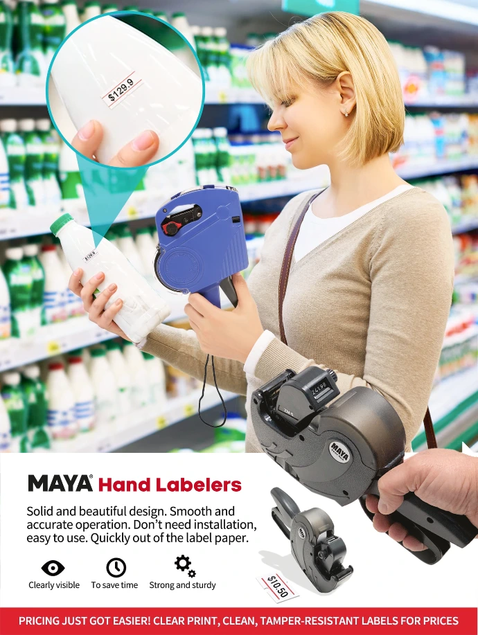 MAYA 2-lines labeler is widely used in retail, grocery stores, warehouses, and pharmacies. Built with durable materials and an ergonomic design, it ensures comfort during prolonged use, while the simple ink and label roll replacement system makes maintenance very quick and easy.